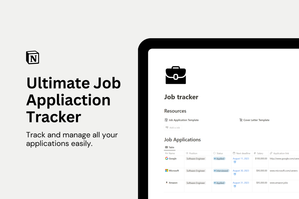 Looking for a job can be challenging, with lots of applications and interviews to keep track of. But don't worry! We have the perfect solution: the Notion Job Application Tracker Template.