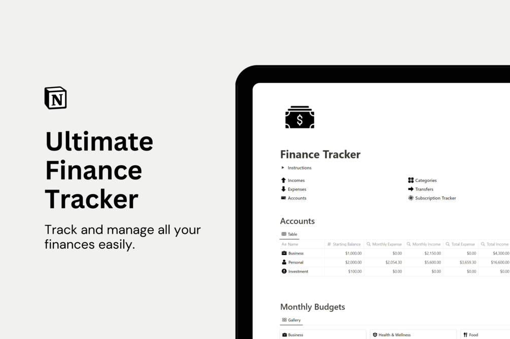 Notion Finance Tracker: The ultimate dashboard to track all your finances