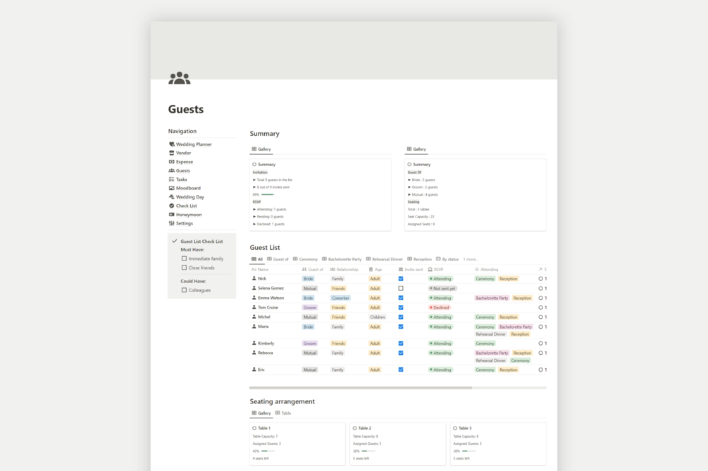 Notion Wedding Planner Template
