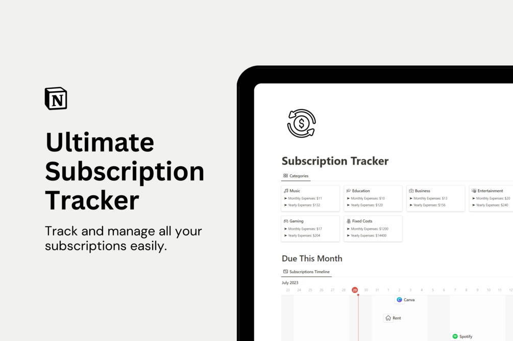 Say goodbye to subscription clutter and create an order with this Notion template. Take control of your subscriptions and maximize your money with a simple tracker tailored to your needs.