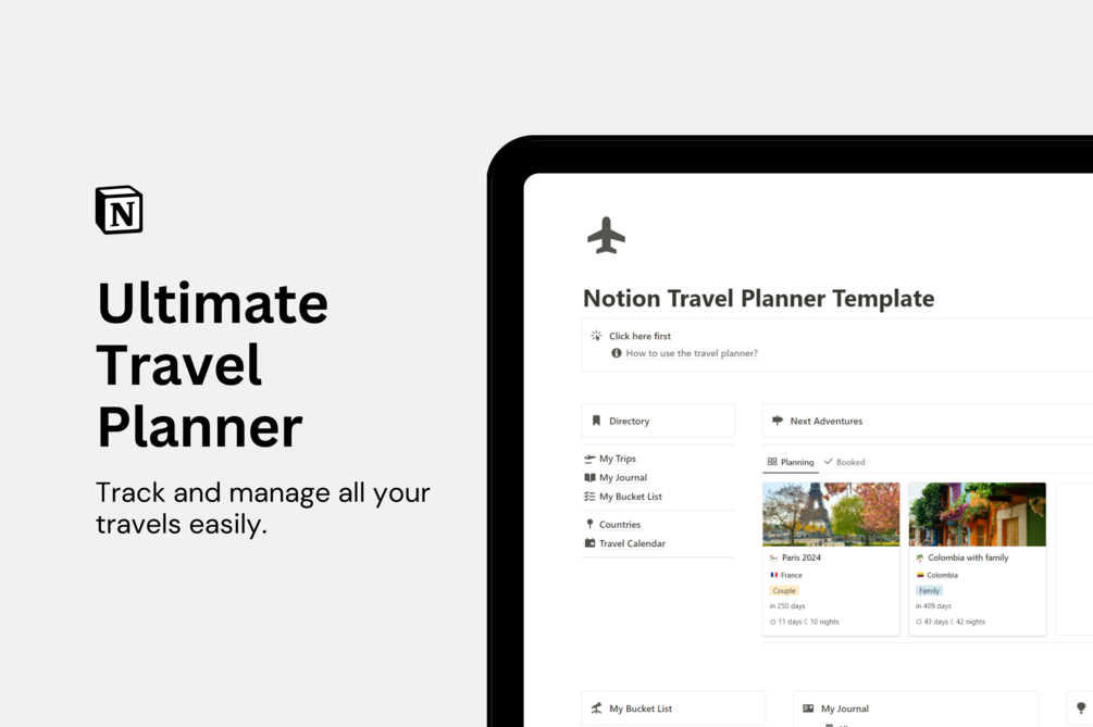 With the Notion Travel Planner template, your travel preparations and memories come together in one organized and user-friendly space, making each trip a seamless and unforgettable experience!
